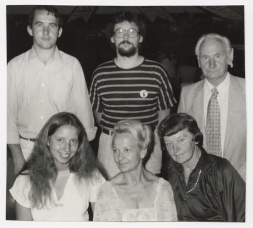 Rakstnieku pēcpusdienas dalībnieki. No kr.: Inārs Brēdrihs, Daina Šķēle, Janīna Babre (ASV), Elga Leja