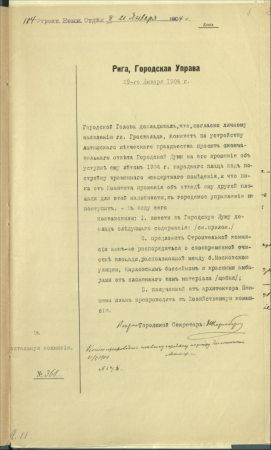 Rīgas pilsētas valdes sarakste ar Būvniecības komisiju par laukuma piešķiršanu Rīgā Latviešu dziesmu svētku halles būvei