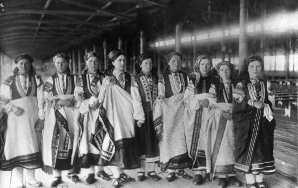 Rucavas jauktā kora dziedātājas no Lejaskurzemes V Dziesmu svētku laikā