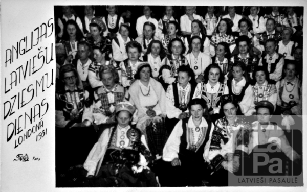 Annotation: Sievietes tautastērpos Anglijas latviešu Dziesmu dienās Londonā, 1951. gada 29. jūlijā. |