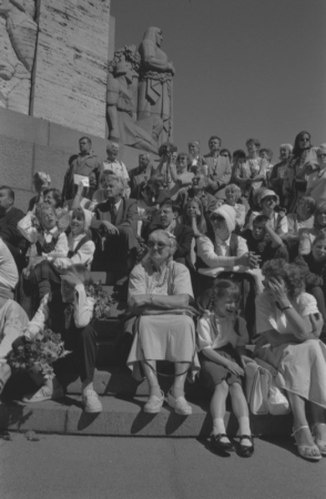 Skatītāji pie Brīvības pieminekļa XXII Vispārējo latviešu Dziesmu un XII Deju svētku gājiena laikā Grigalis, Guntars
