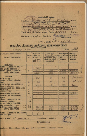 Speciālo līdzekļu ienākumu-izdevumu tāme 1993.gadam