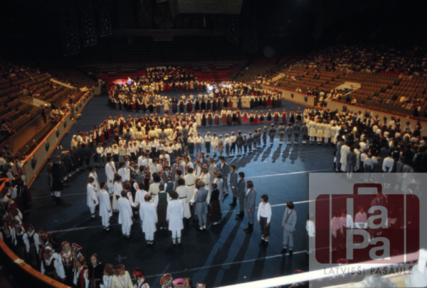 Tautas deju lieluzvedums 6. Latviešu dziesmu svētkos un Latviešu dienās Kanādā Tenne-Šēns, Andrejs, 1947- Annotation: Tautas deju lieluzvedums Maple Leaf Gardens ledus arēnā Toronto. 6. Latviešu dziesmu svētki un Latviešu dienas Kanādā, 1976. gads. |