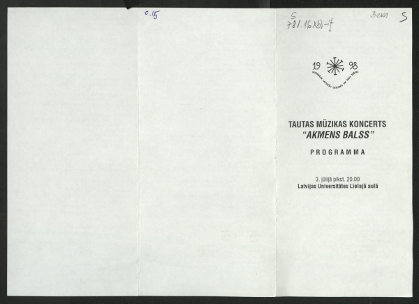 Tautas mūzikas koncerts "Akmens balss" 3. jūlijā plkst. 20.00 Latvijas Universitātes Lielajā aulā : programma