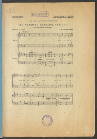 Tev nebrīves smagajos spaidos : revolucionāru dziesma Mediņš, Jēkabs, 1885-1971