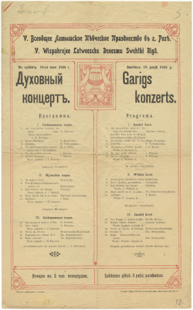 V Vispārējie Latviešu Dziesmu svētki Rīgā : Garīgs koncerts : programma