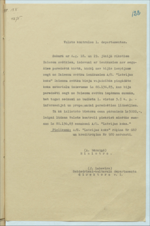 Annotation: Sarakste ar Valsts kontroli par Dziesmu svētku sarīkošanu