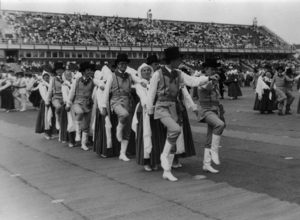 Ventspils vidējās paaudzes deju kolektīva "Kurzeme" uzstāšanās stadionā "Daugava" XIX Vispārējo latviešu Dziesmu un Deju svētku laikā Kokins, A.