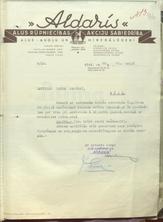 Vēstule Latvijas Darba kamerai no A/S "Aldaris" Aldaris (uzņēmums)