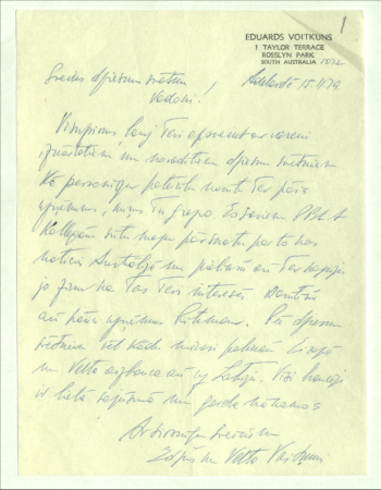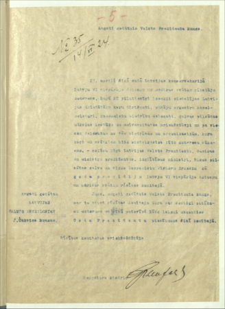 Vēstule Teodoram Zeifertam Čakste, Jānis, 1859-1927 Annotation: Valsts prezidenta Jāņa Čakstes sarakste ar Teodoru Zeifertu par 6. Vispārējo latviešu dziesmu svētku Rīcības komiteju. |