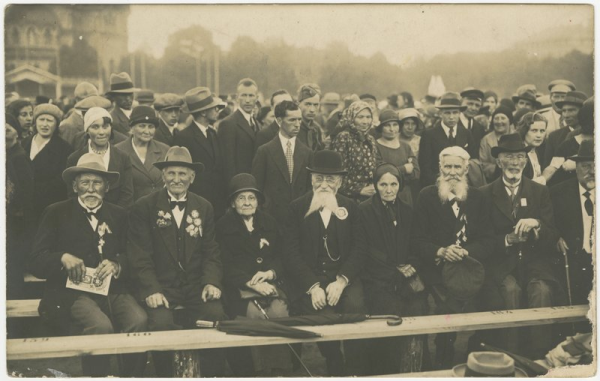 VIII Vispārējie latviešu Dziesmu svētki : skatītāji estrādē Esplanādē [attēls] Nav autora