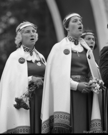 Vispārējie latviešu Dziesmu un Deju svētki 1980. gadā Salcēvičs, Romvalds, 1949- Annotation: 1980.gada jūlijā Rīgā notika astoņpadsmitie Dziesmu svētki un astotie deju svētki pulcējot Mežparka Lielajā estrādē 17425 dziedātājus , stadionā " Daugava '' ap 5000 dejotājus , kā arī aptuveni 2000 pūtēju orķestra muzikantus. Attēlā : Sieviešu koru dziedātājas |