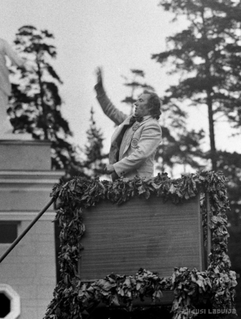 Vispārējie latviešu Dziesmu un Deju svētki 1980. gadā Salcēvičs, Romvalds, 1949- Annotation: 1980.gada jūlijā Rīgā notika astoņpadsmitie Dziesmu svētki un astotie deju svētki pulcējot Mežparka Lielajā estrādē 17425 dziedātājus , stadionā " Daugava '' ap 5000 dejotājus , kā arī aptuveni 2000 pūtēju orķestra muzikantus. Attēlā : Mežparka estrādē skan pūtēju orķestru melodijas |