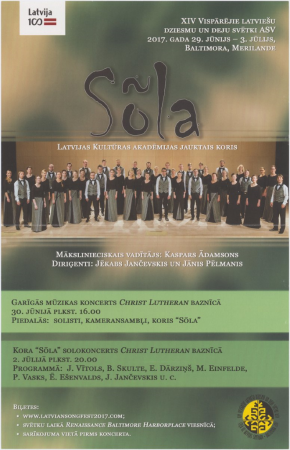 XIV Vispārējie latviešu dziesmu un deju svētki ASV 2017. gada 29. jūnijs-3. jūlijs, Baltimora, Merilande : Sõla : Latvijas kultūras akadēmijas jauktais koris [afiša]