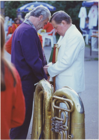 XX Vispārējie latviešu dziesmu un X deju svētki. Svētku dalībnieki Balodis, Leons, 1940- Annotation: Mūzikas instruments: suzafons |