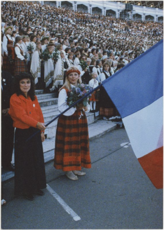 XX Vispārējie latviešu dziesmu un X deju svētki. Svētku dalībnieki Mežaparka estrādē Balodis, Leons, 1940- Annotation: Karogs: Francija |