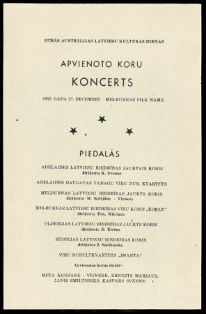 Austrālijas Latviešu 2. Kultūras dienas. Melburna, 1952. g. 26. decembris - 1953. g. 12. janvāris. 6 lp. : Apvienoto koru koncerta programma, 27.decembris