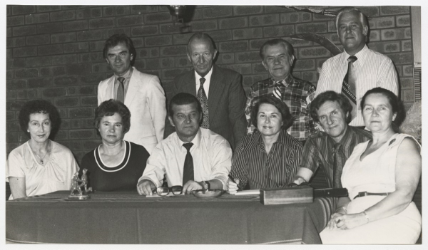 Annotation: Austrālijas Latviešu 30. Kultūras dienu Rīcības komiteja. No kr. 1.r.: Inta Ertnere, Aina Zalstrova, Juris Pārups (priekšsēdis), Tamāra Karabanova, Jūlijs Bernšteins, Ausma Balode; 2.r. Jānis Pelšs, Nikolajs Gūtmanis, Jānis Bukovskis, Gunārs Kaģis. Pērta, 1980.g. 26. - 31. decembris. Foto: nezināms. |