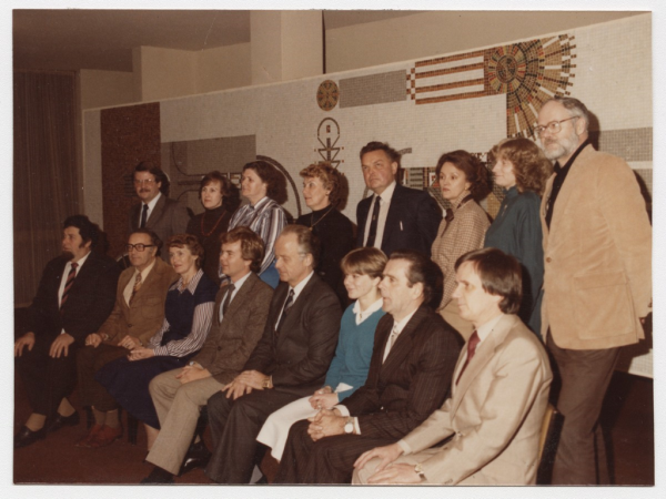 Annotation: Austrālijas Latviešu 33. Kultūras dienu Rīcības komiteja. No kr. 1.r. Arturs Eglājs, Viktors Bendrups, Ilga Beka, Jānis Dēliņš, Armands Ļauļa (priekšsēdis), Līga Ozoliņa, Gunārs Kurlis, Māris Kučers; 2.r. Juris Zemītis, Valija Kroforda, Elfrīda Rimšāne, Ināra Zemīte, Inārs Brēdrihs, Guna Kūlniece, Aina Pūce, Ivars Muzikants. Melburna, 1983.g. 27. - 31. decembris. Foto: nezināms. |