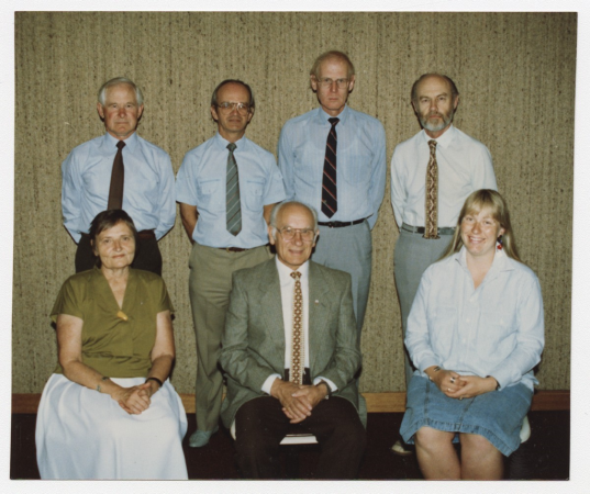 Annotation: Austrālijas Latviešu 40. Kultūras dienu Rīcības komiteja. 1.r. no kr.: Skaidrīte Darius, Egons Eversons (priekšsēdis), Māra Eversone; 2.r. Alberts Levics, Juris Jakovics, Andrejs Grigulis, Gunārs Šterns. Kanbera, 1990.g. 26. - 31. decembris. Foto: nezināms. |