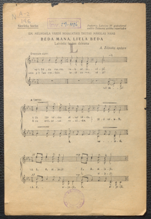 Bēda mana liela bēda : latviešu tautas dziesma Žilinskis, Arvīds, 1905-1993