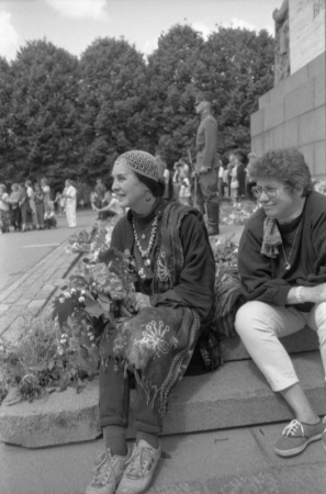 Dejotāja no ASV Vija Vētra XXII Vispārējo latviešu Dziesmu un XII Deju svētku gājiena laikā Grigalis, Guntars