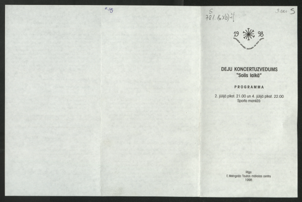 Deju koncertuzvedums "Solis laikā" 2. jūlijā plkst. 21.00 un 4. jūlijā plkst. 22.00 Sporta manēžā : programma Emīla Melngaiļa Tautas mākslas centrs