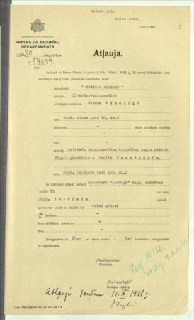 Dziesmu svētku biedrības sarakste ar Sabiedrisko lietu ministrijas Preses un biedrību departamentu par iespēju izdot informat;ivo izdevumu "Mūzikas apskats", Dziesmu svētku biedrības statūti