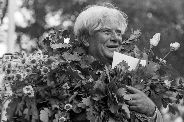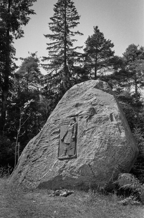 Dziesmu svētku simtgade : XVI Dziesmu svētku ieskaņa Dikļos. Tēlnieka Ruslana Smirnova darinātais piemiņas akmens Janaitis, Gunārs, 1934-2022