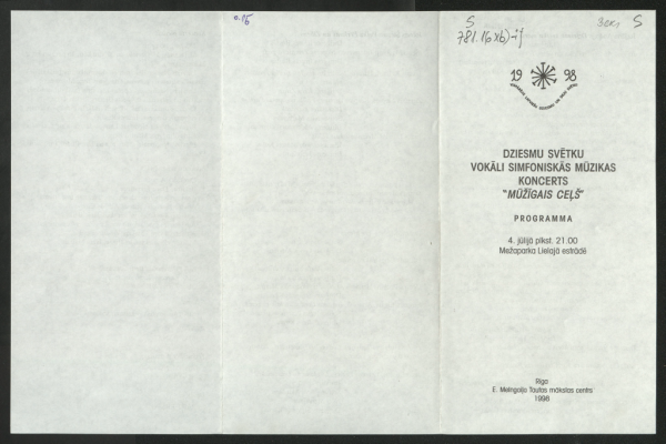 Dziesmu svētku vokāli simfoniskās mūzikas koncerts "Mūžīgais ceļš" 4. jūlijā plkst. 21.00 Mežaparka Lielajā estrādē : programma Emīla Melngaiļa Tautas mākslas centrs