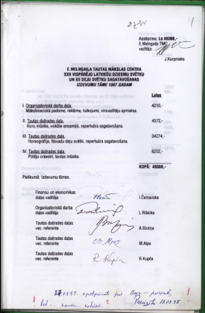 E. Melngaiļa Tautas mākslas centra XXII Vispārējo latviešu dziesmu svētku un XII Deju svētku sagatavošanas izdevumu tāme 1997.gadam