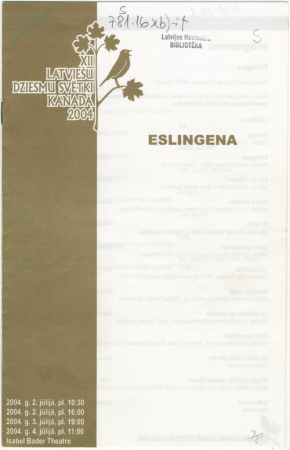 Eslingena : dziesmu spēle XII latviešu dziesmu svētkos Kanādā 2004. g. no 1. līdz 4. jūlijam : programma