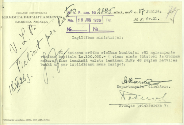 Finanšu ministrijas rīkojums Izglītības ministrijai