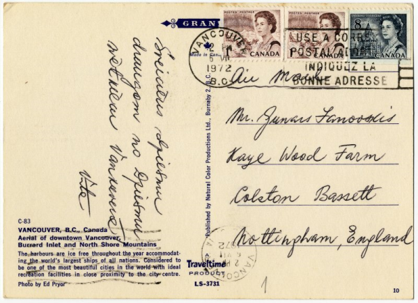 Gunaram Janovskim adresēta pastkarte