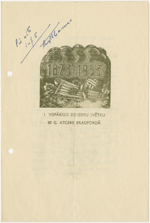 I Vispārējie latviešu Dziesmu svētki Amerikā : 1. Vispārīgo Dziesmu svētku 80 gadu atcere Salle Erard, Piektdien, 1953. g. 2. oktobrī plkst.19.30 : programma