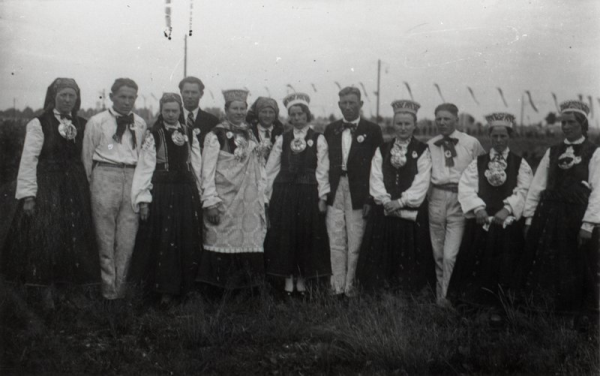 IX latviešu Dziesmu svētku dalībnieki Uzvaras laukumā