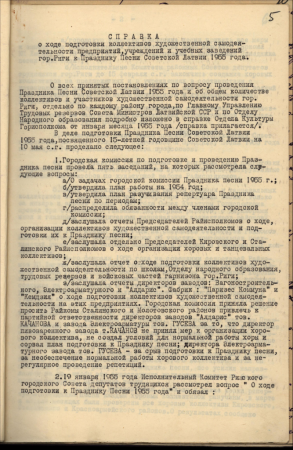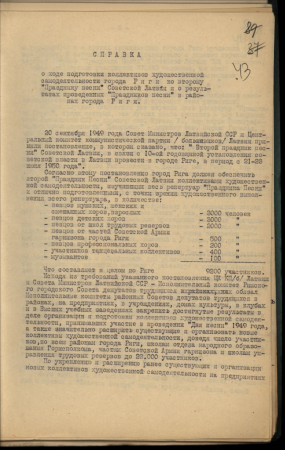 Izziņa par gatavošanos Dziesmu svētkiem Rīgā un par rezultātiem Rīgas rajonos