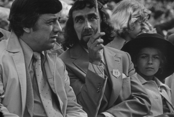 Komponisti Raimonds Pauls (no kreisās) un Imants Kalniņš XVII Vispārējo latviešu Dziesmu un Deju svētku koncertā Mežaparka Lielajā estrādē