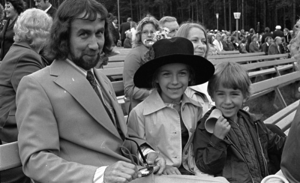 Komponists Imants Kalniņš ar ģimeni XVII Vispārējo latviešu Dziesmu svētku koncertā Mežaparka Lielajā estrādē Janaitis, Gunārs, 1934-2022