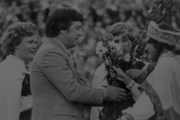 Komponists Raimonds Pauls saņem apsveikumus XVIII Vispārējo latviešu Dziesmu un Deju svētku koncertā Mežaparka Lielajā estrādē Mežavilks, Zigurds, 1926-2015