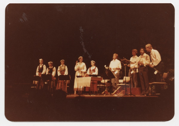 Annotation: Austrālijas Latviešu 33. Kultūras dienas. Uzstājas Bostonas (ASV) Latviešu dziesmu un mūzikas ansamblis "Kolibri". Melburna, 1983.g. 27. decembris. Foto nezināms. |