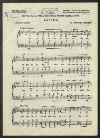 Latvijā : jauktam korim Barisons, Pēteris, 1904-1947