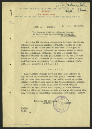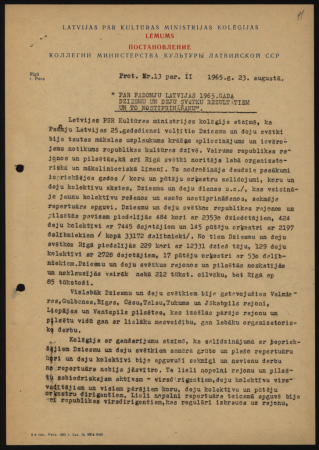 Latvijas PSR Kultūras ministrijas kolēģijas lēmums