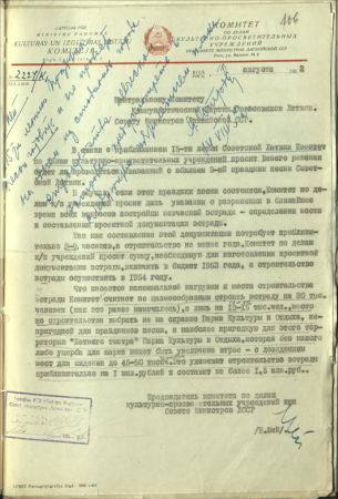 Latvijas PSR Ministru Padomes Kultūras un izglītības iestāžu komitejas kolēģijas sēžu protokoli par gatavošanos Dziesmu svētkiem
