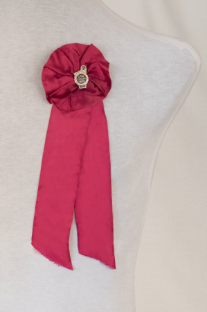 Annotation: Leonīda Vīgnera virsdiriģenta ROZETE un svētku nozīmīte, XII Vispārējie latviešu (Padomju Latvijas Ceturtie) dziesmu svētki, Rīga, 1960.gada 18.-24.jūlijs. Rozete no karmīnsarkanas zīda lentes, tās centrā piesprausta nozīmīte - gaišs metāls, vertikāla kokles forma ar ziedu vidū, zieda vidus un kokles gali krāsoti tumši brūni, zieda vidū uzraksts "LPSR/ Dziesmu/ svētki", lejā gada skaitlis "1960". |