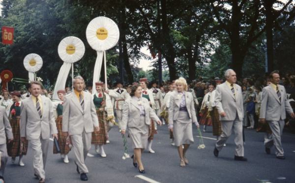 Madonas rajona dalībnieki XVII Vispārējo latviešu dziesmu un deju svētku gājienā Kumsārs, Arvīds, 1935 -