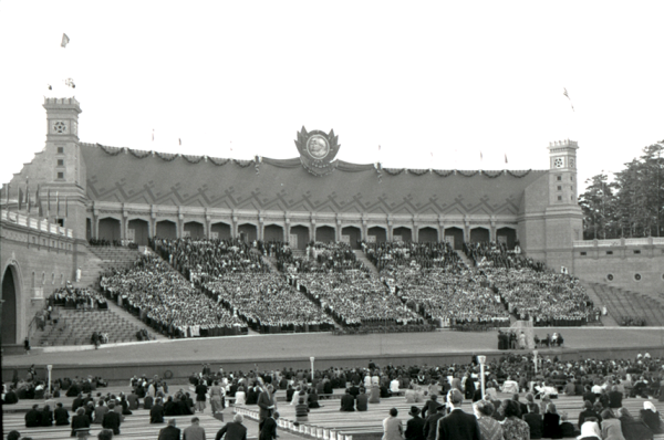 Padomju Latvijas XII Dziesmu un III Deju svētku koncerts jaunuzceltajā Mežaparka estrādē Rīgā
