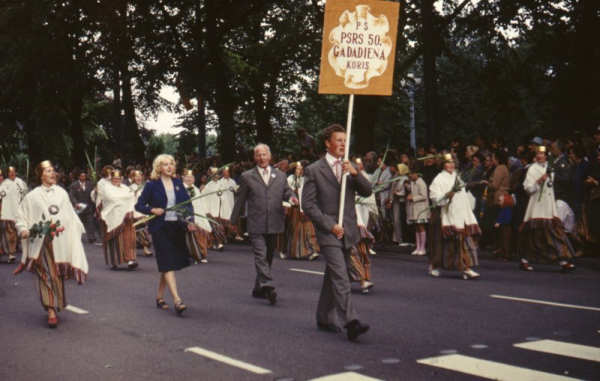 Padomju saimniecība "PSRS 50 gadadiena" (Bauskas rajons) XVII Vispārējo latviešu dziesmu un deju svētku gājienā Kumsārs, Arvīds, 1935 -