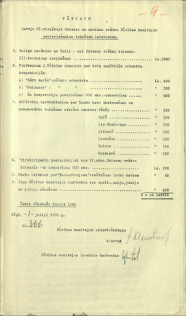 Pārskats Latvju VI. vispārējo dziesmu un mūzikas svētku Rīcības komitejas nepieciešamiem tekošiem izdevumiem